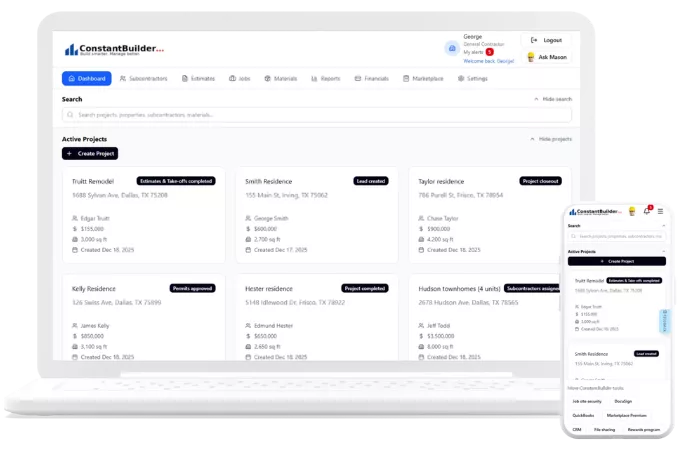 Home builder construction management software is a digital platform that helps homeowners organize, track, and manage all aspects of residential construction or remodeling projects. It centralizes communication, budgets, schedules, documents, and subcontractor coordination in one accessible location, providing professional-grade project management tools specifically designed for home building.